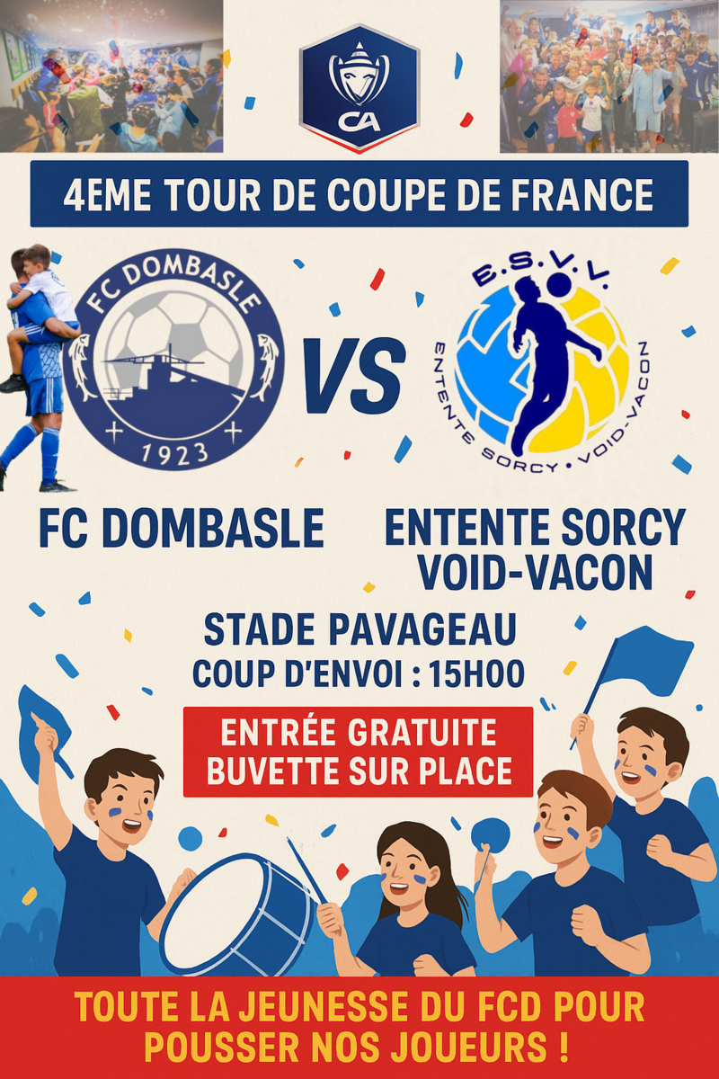 📣 Venez nombreux, en famille, entre amis, pour pousser nos joueurs et écrire ensemble une nouvelle page de l’histoire du FC Dombasle ! 💙