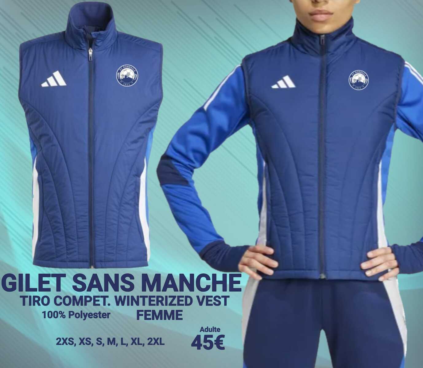 Coloris bleu et blandes blanches, avec le logo du FCD